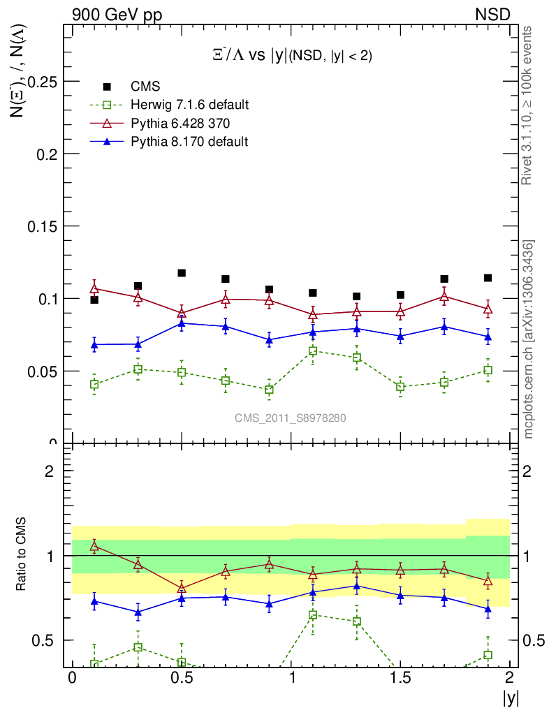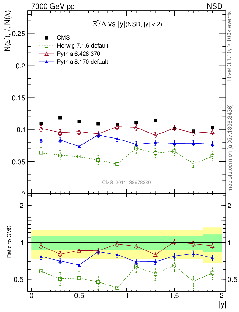 Soft QCD (nsd only) : Identified Particles : Ratios : Ξ-/Λ vs |y|