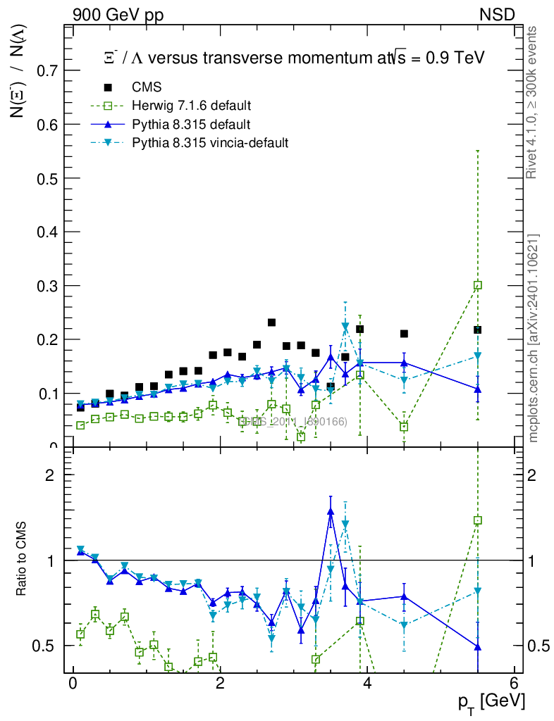 Soft QCD (nsd only) : Identified Particles : Ratios : Ξ-/Λ vs pT