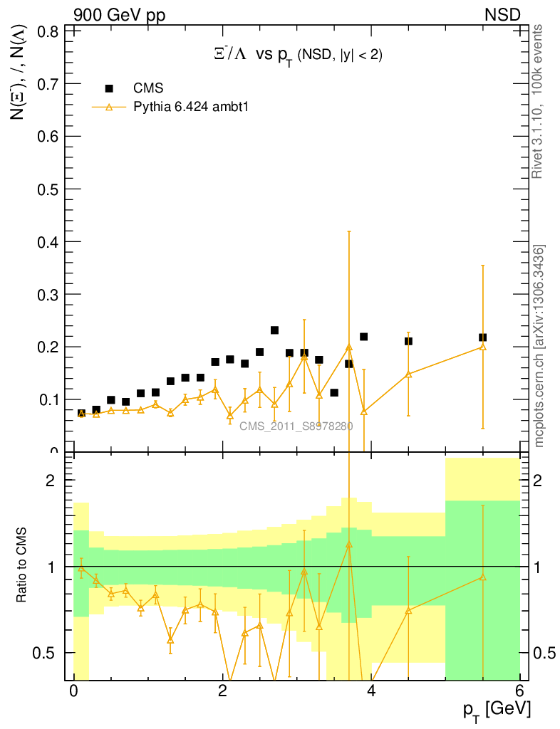 Soft QCD (nsd only) : Identified Particles : Ratios : Ξ-/Λ vs pT