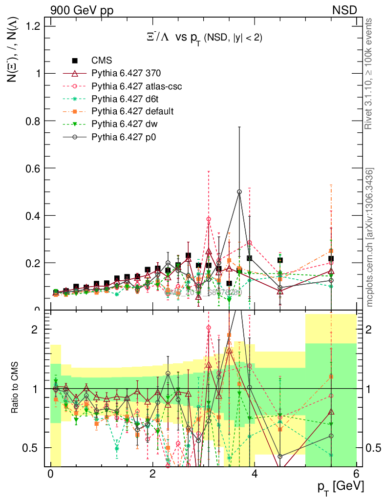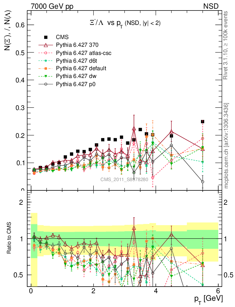 Soft QCD (nsd only) : Identified Particles : Ratios : Ξ-/Λ vs pT