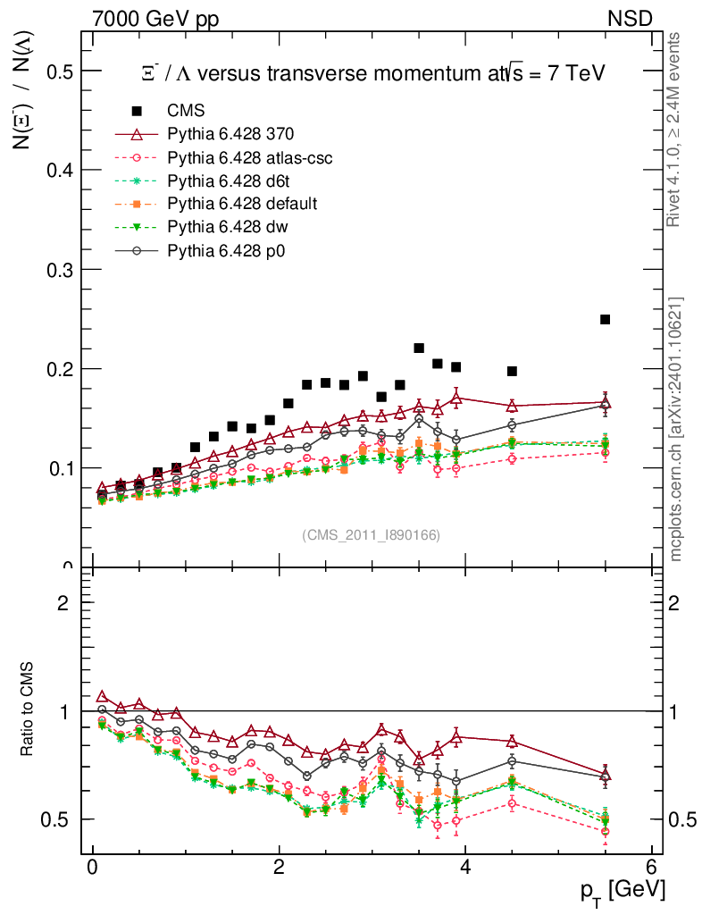 Soft QCD (nsd only) : Identified Particles : Ratios : Ξ-/Λ vs pT