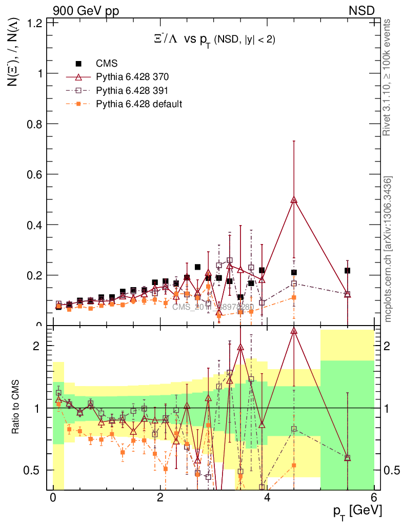 Soft QCD (nsd only) : Identified Particles : Ratios : Ξ-/Λ vs pT