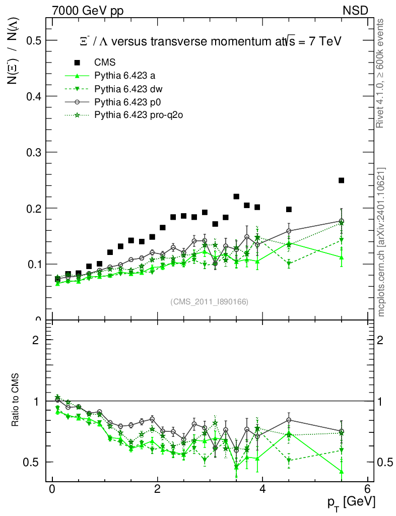 Soft QCD (nsd only) : Identified Particles : Ratios : Ξ-/Λ vs pT