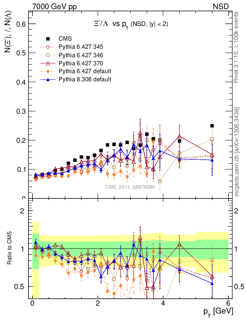 Soft QCD (nsd only) : Identified Particles : Ratios : Ξ-/Λ vs pT