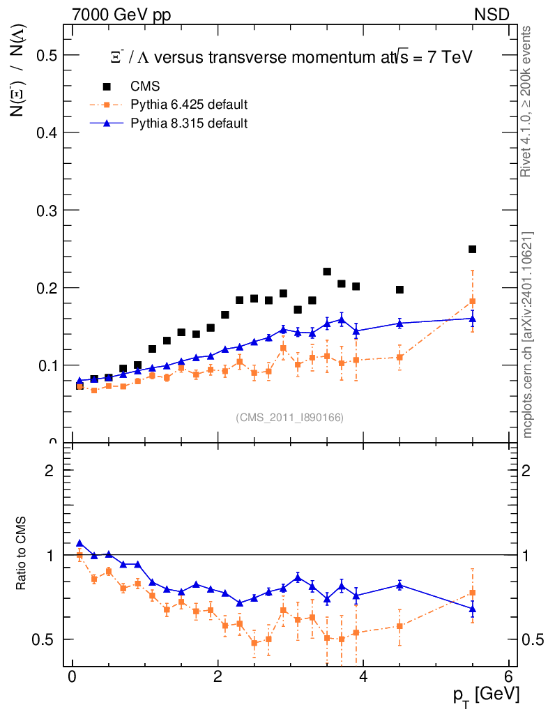Soft QCD (nsd only) : Identified Particles : Ratios : Ξ-/Λ vs pT