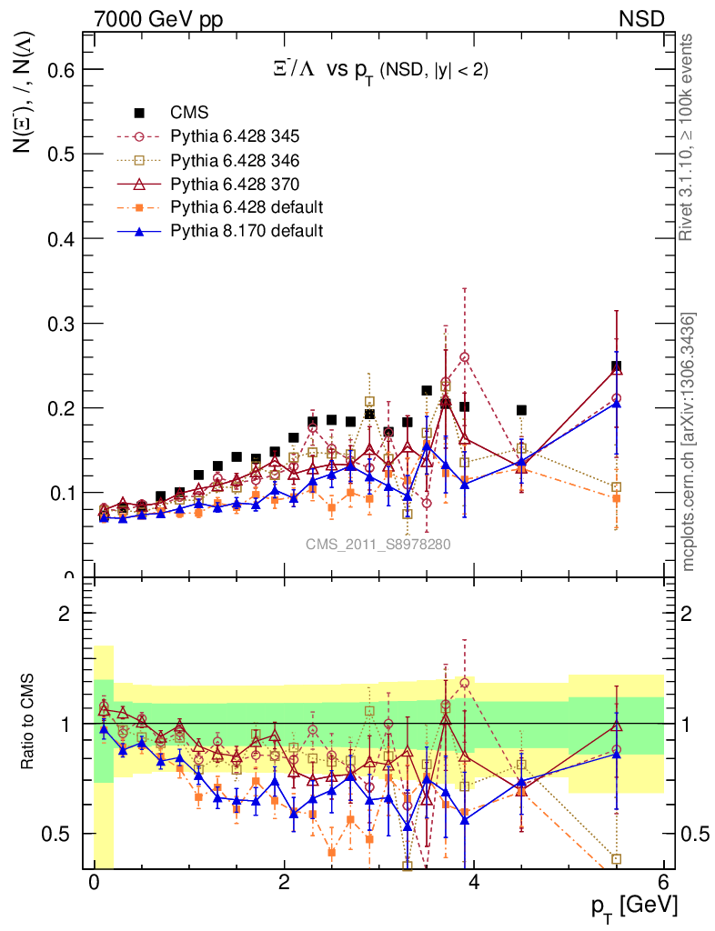 Soft QCD (nsd only) : Identified Particles : Ratios : Ξ-/Λ vs pT