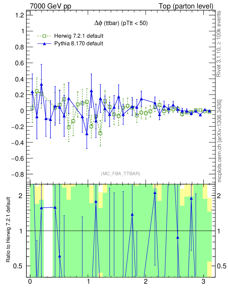 Top (parton level) : Asymmetry : Δφ (ttbar)