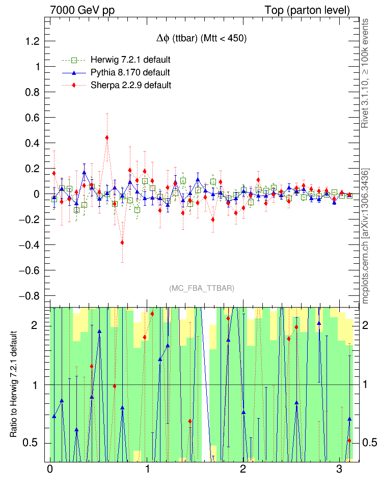 Top (parton level) : Asymmetry : Δφ (ttbar)