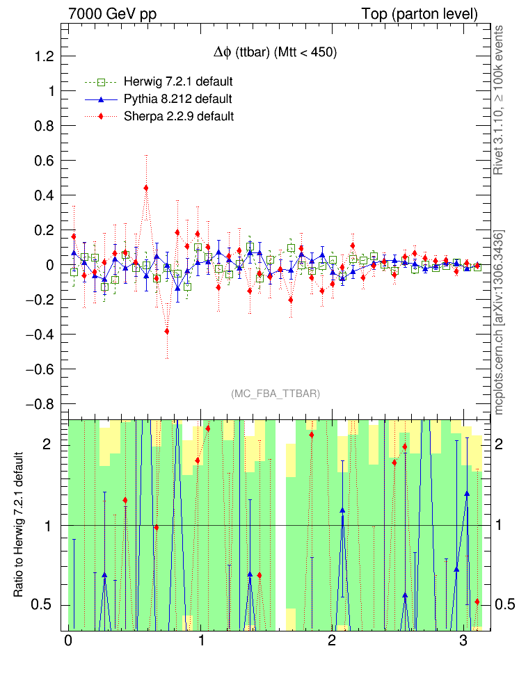 Top (parton level) : Asymmetry : Δφ (ttbar)