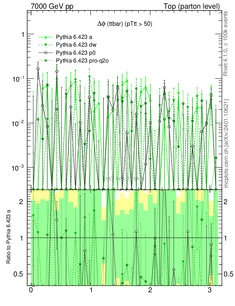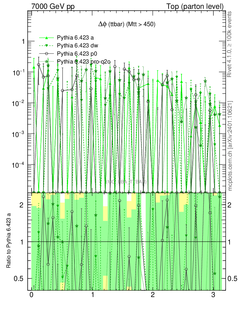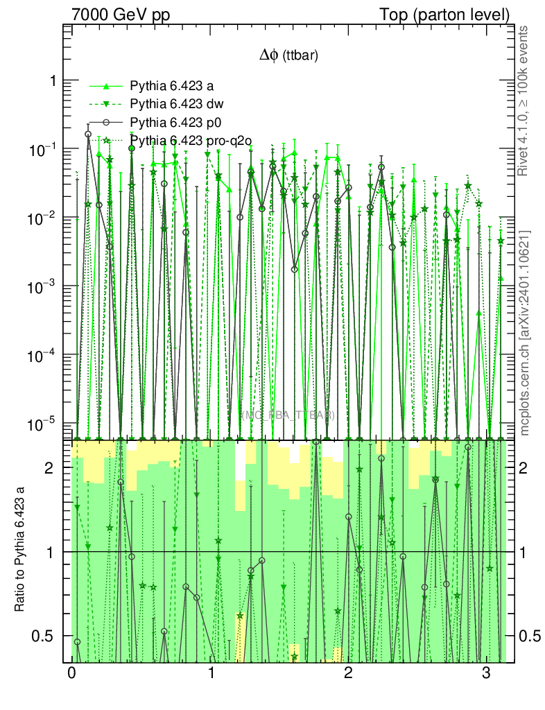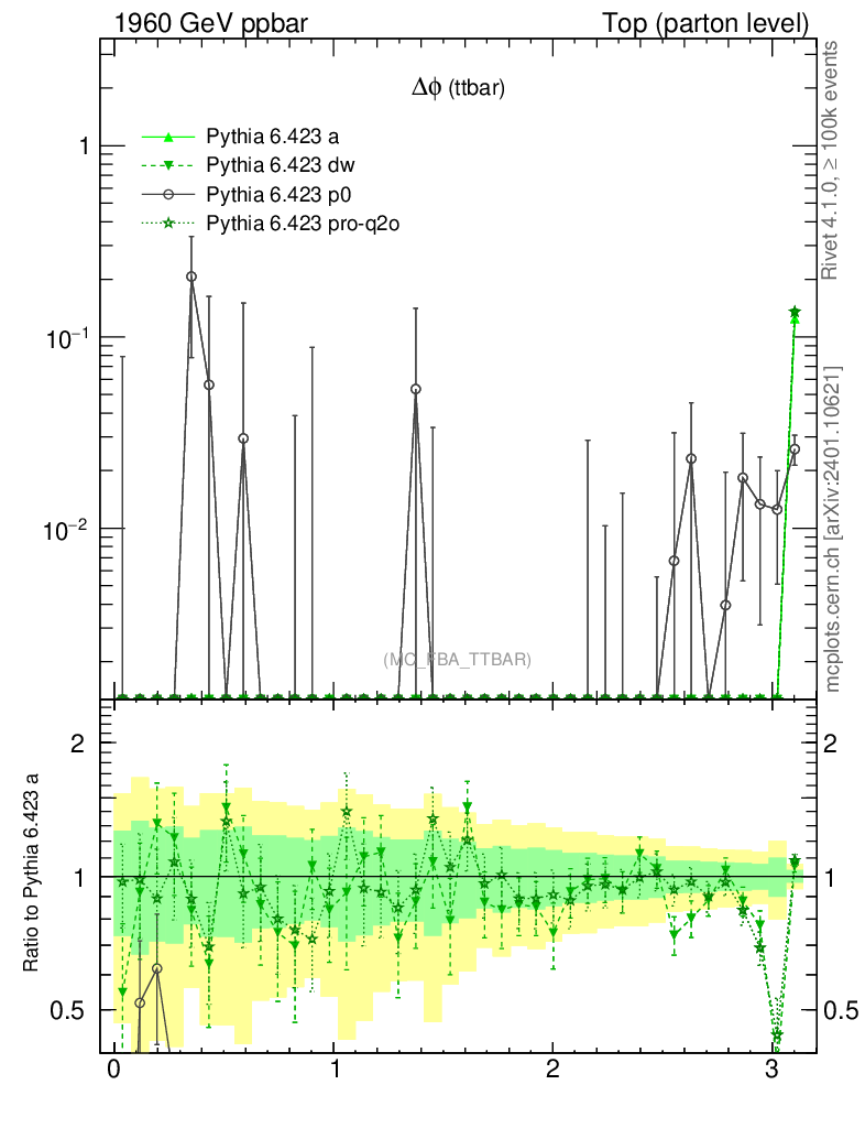 Top (parton level) : Asymmetry : Δφ (ttbar)