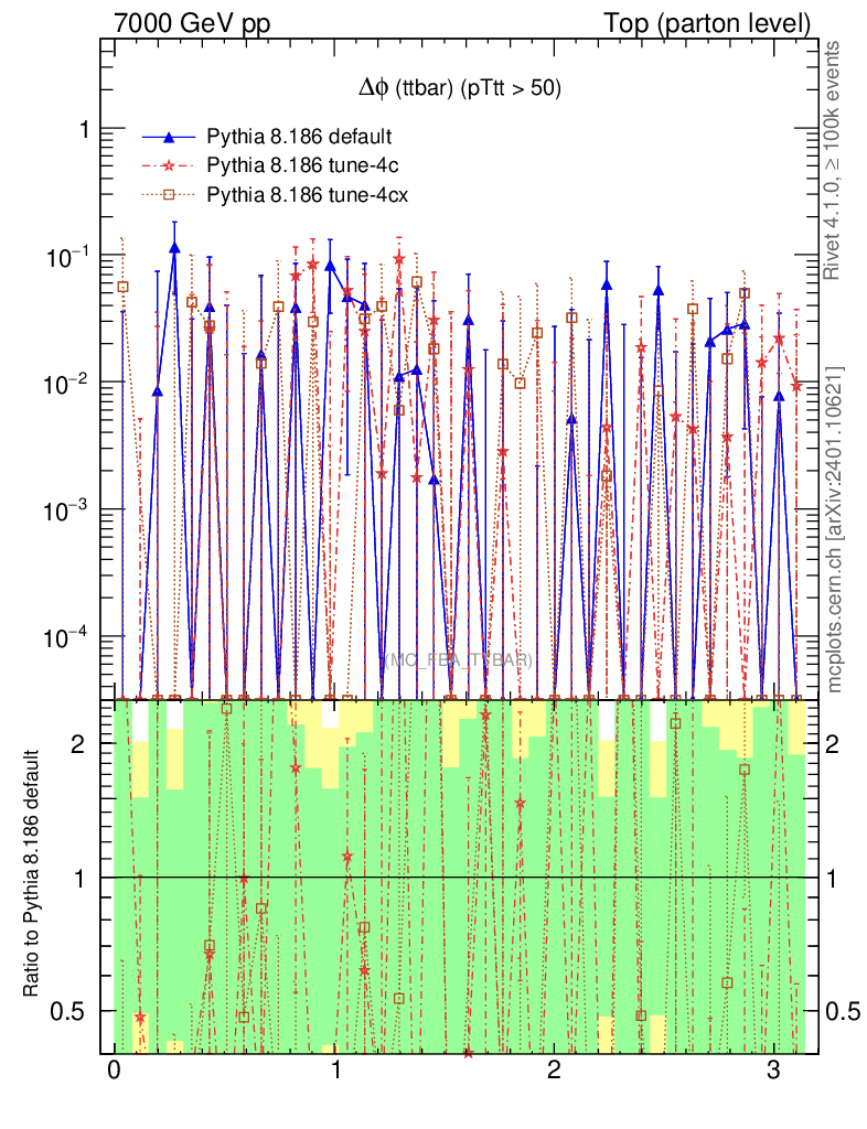 Top (parton level) : Asymmetry : Δφ (ttbar)