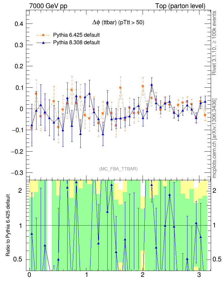 Top (parton level) : Asymmetry : Δφ (ttbar)