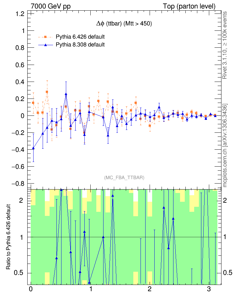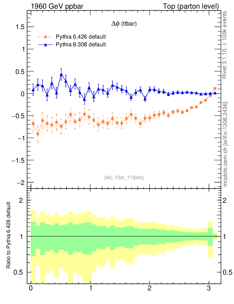 Top (parton level) : Asymmetry : Δφ (ttbar)