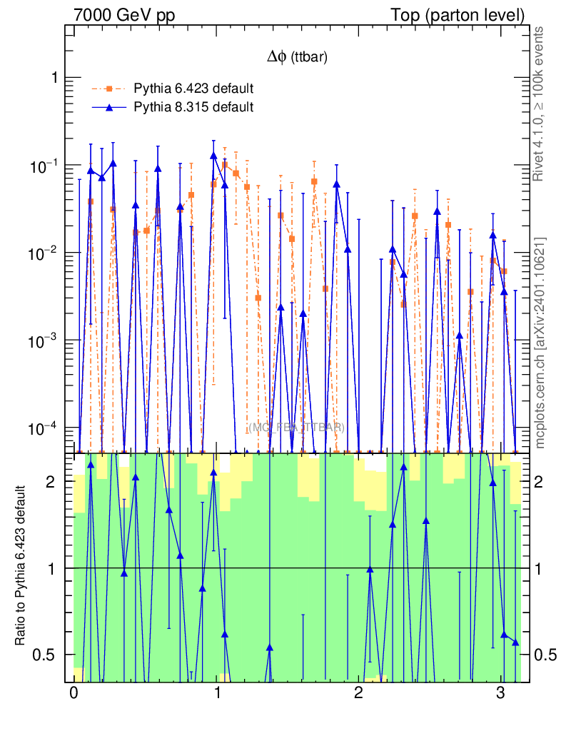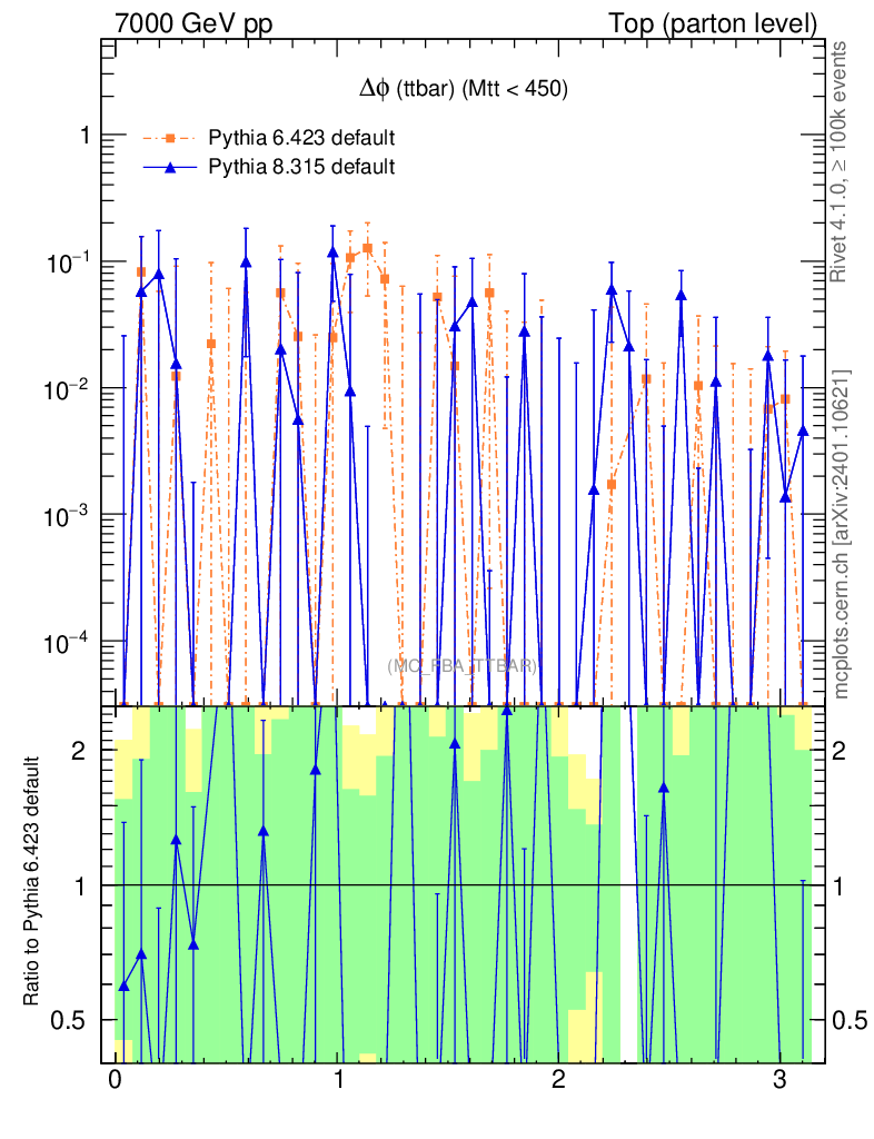 Top (parton level) : Asymmetry : Δφ (ttbar)