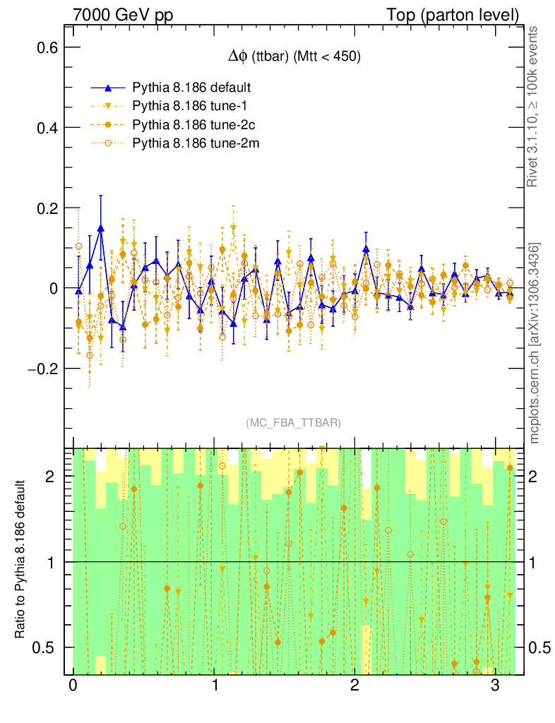 Top (parton level) : Asymmetry : Δφ (ttbar)