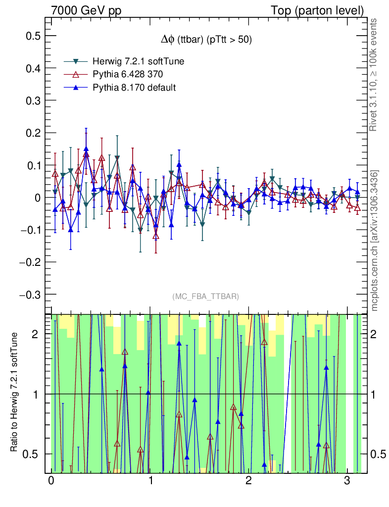 Top (parton level) : Asymmetry : Δφ (ttbar)