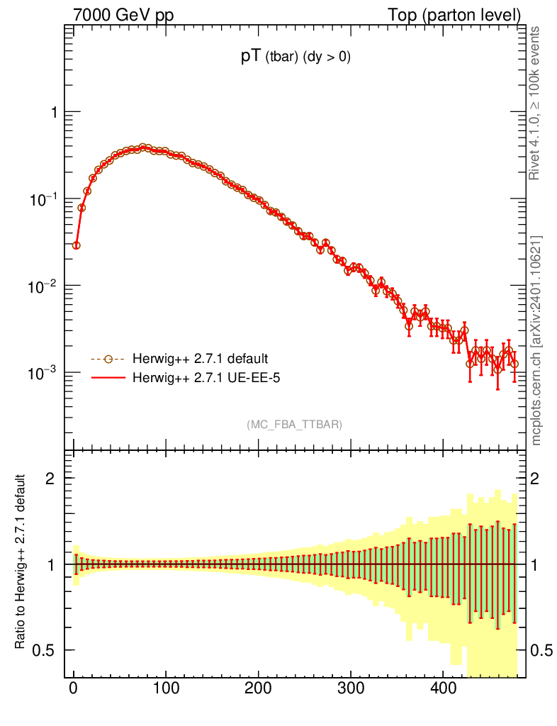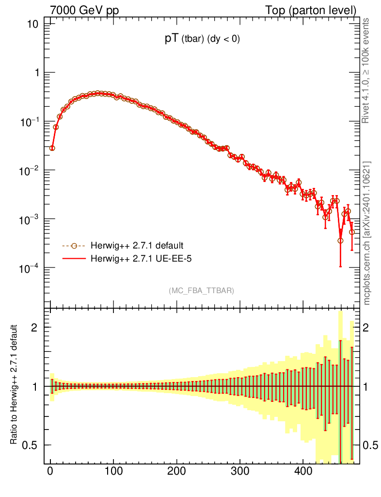Top (parton level) : Individual tops : pT (tbar)