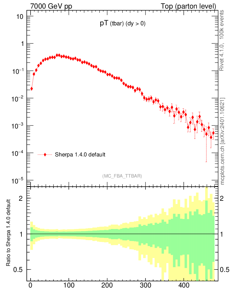 Top (parton level) : Individual tops : pT (tbar)