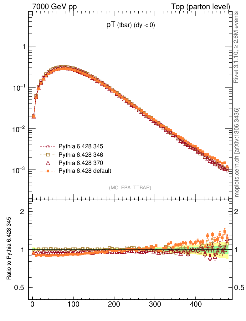 Top (parton level) : Individual tops : pT (tbar)