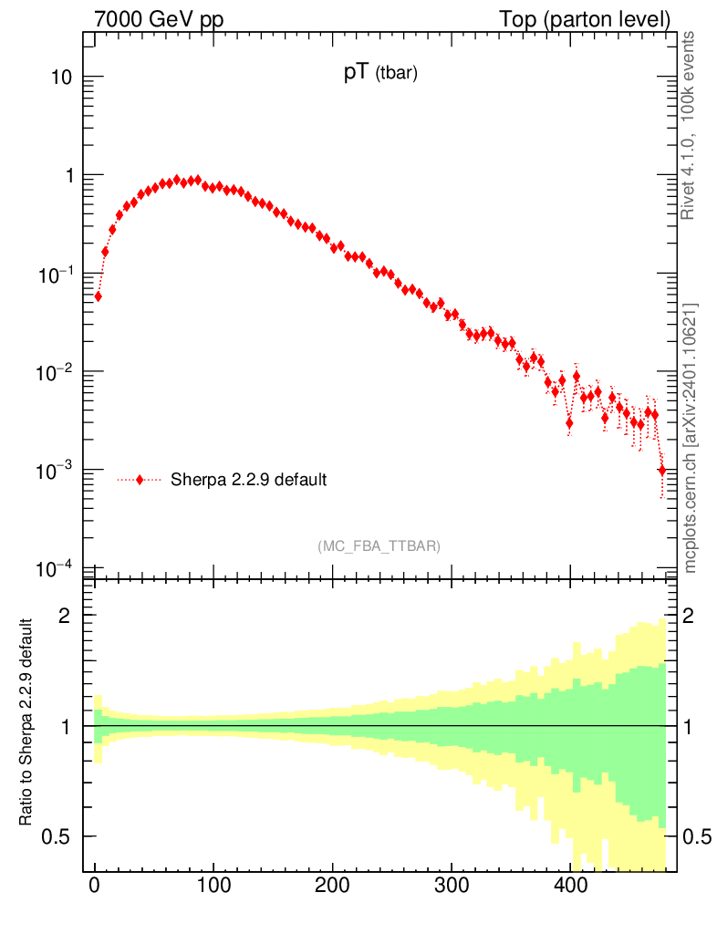 Top (parton level) : Individual tops : pT (tbar)