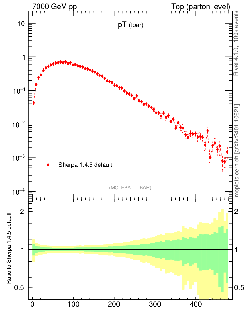 Top (parton level) : Individual tops : pT (tbar)