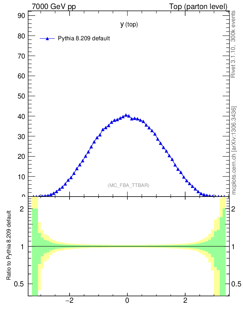 Plot of ytop in 7000 GeV pp collisions