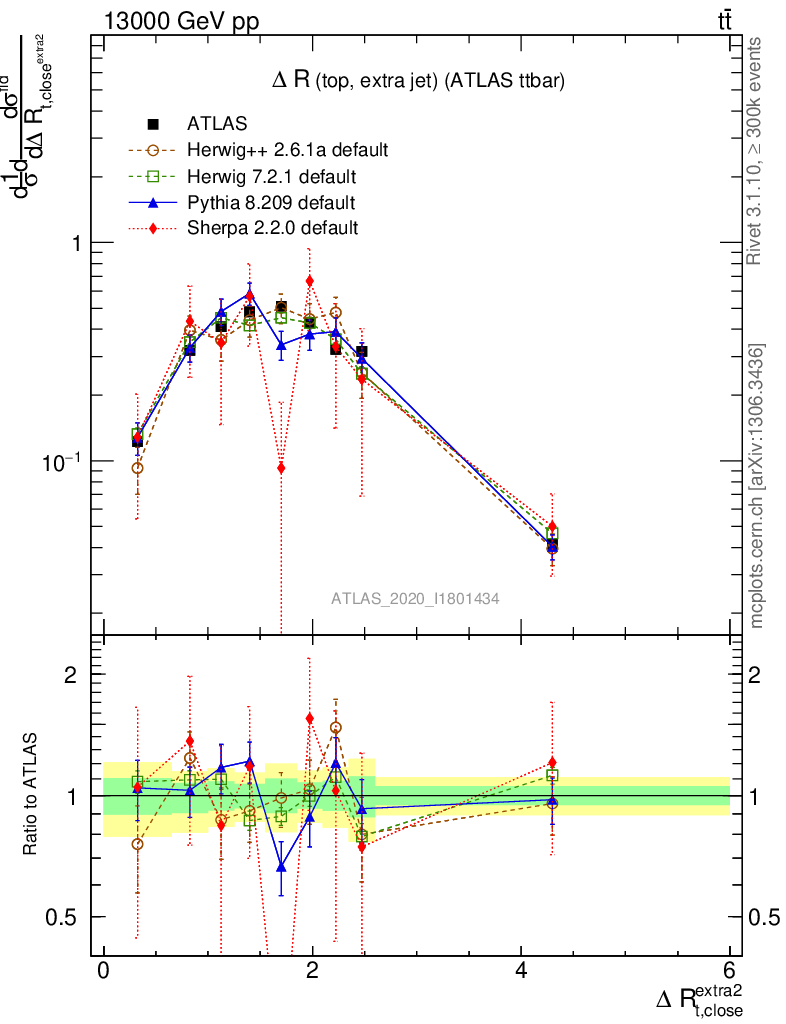 ) : ΔR(top, extra jet)