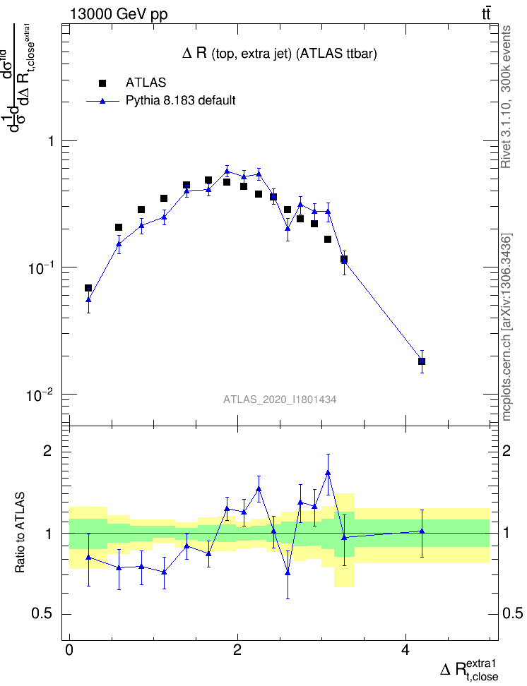 ) : ΔR(top, extra jet)