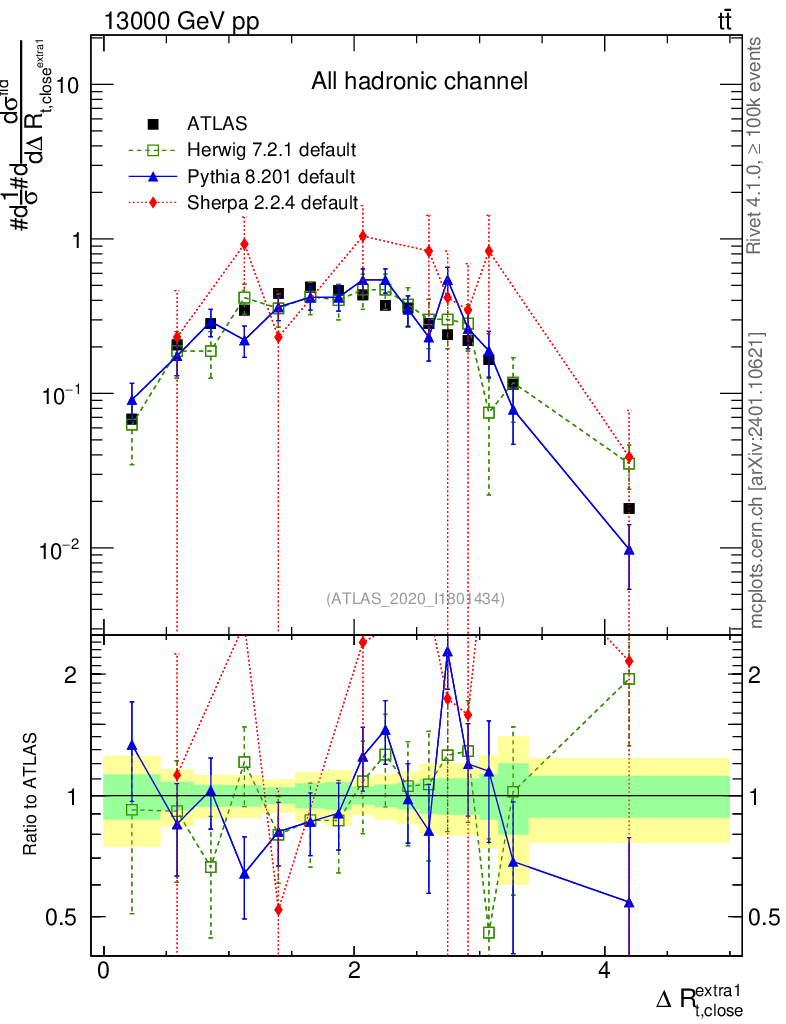 ) : ΔR(top, extra jet)