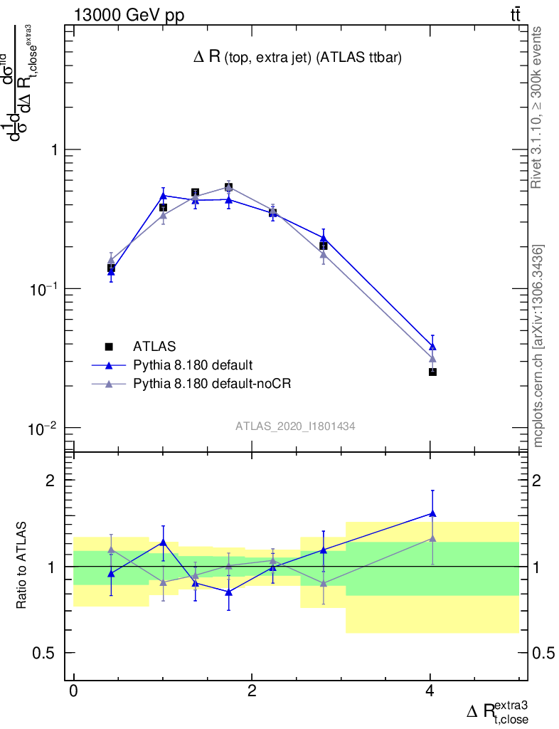 ) : ΔR(top, extra jet)