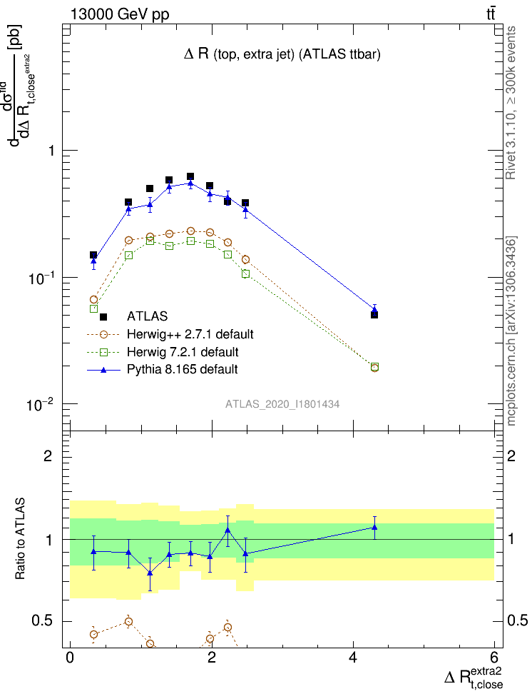 ) : ΔR(top, extra jet)