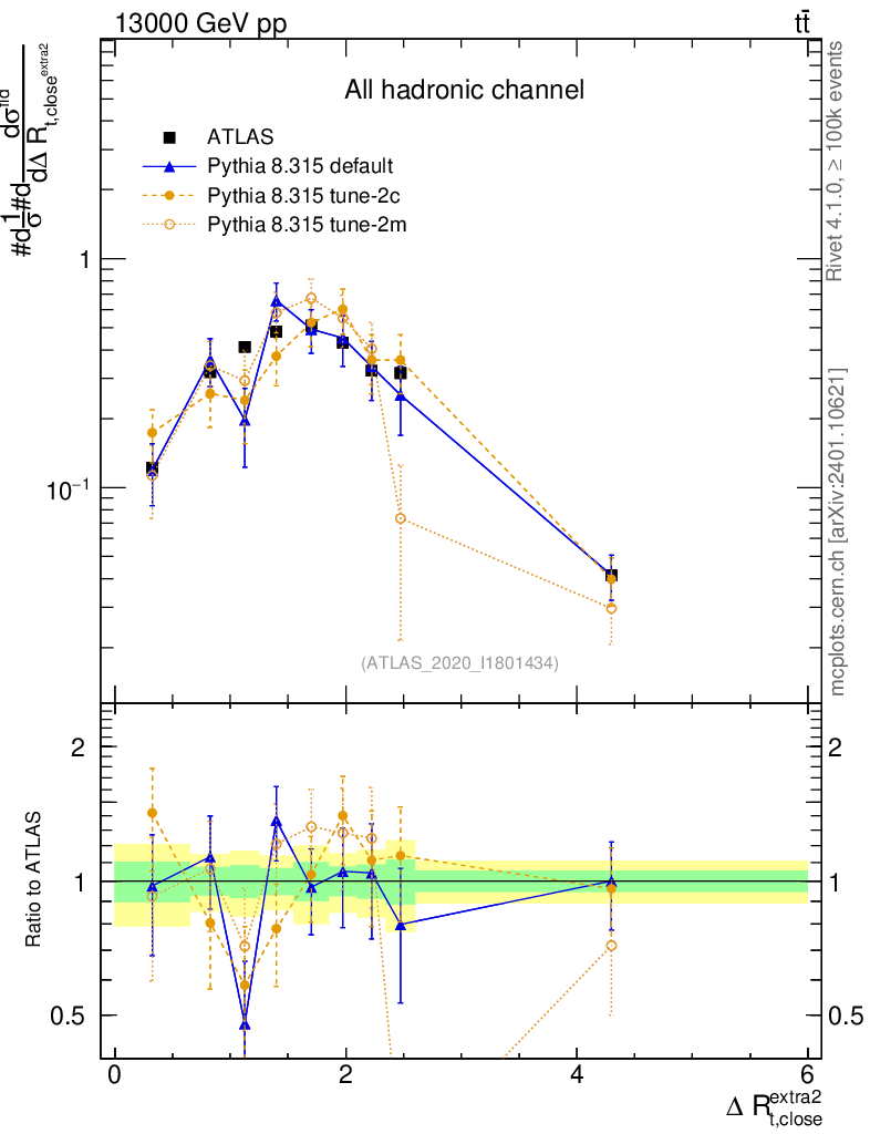 ) : ΔR(top, extra jet)