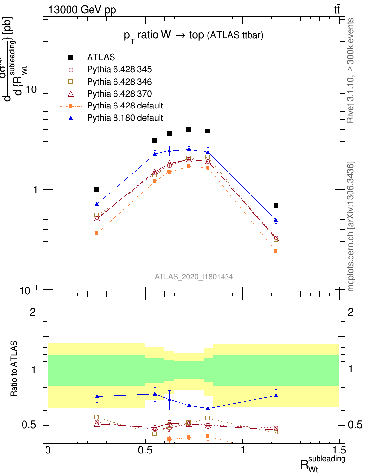 ΔR(extra jets) ΔR(extra, leading jet) ΔR(top, extra jet) Jet pT Lepton η Lepton pT Δφ(lepton,jet) ST(leptons, jets) Pouttop Top pT Top rapidity χ(ttbar) Δφ(ttbar) Δy (ttbar) ttbar HT m(ttbar) Pcrossttbar ttbar pT Ttbar rapidity Mean rapidity Cross sections