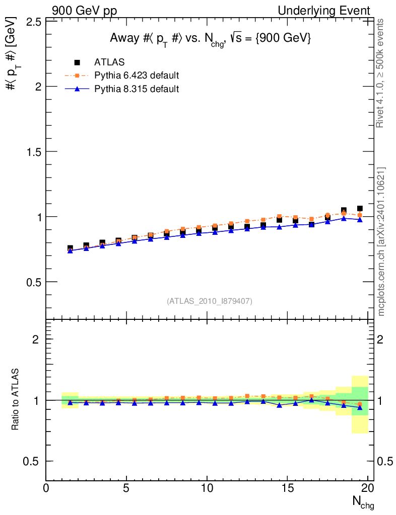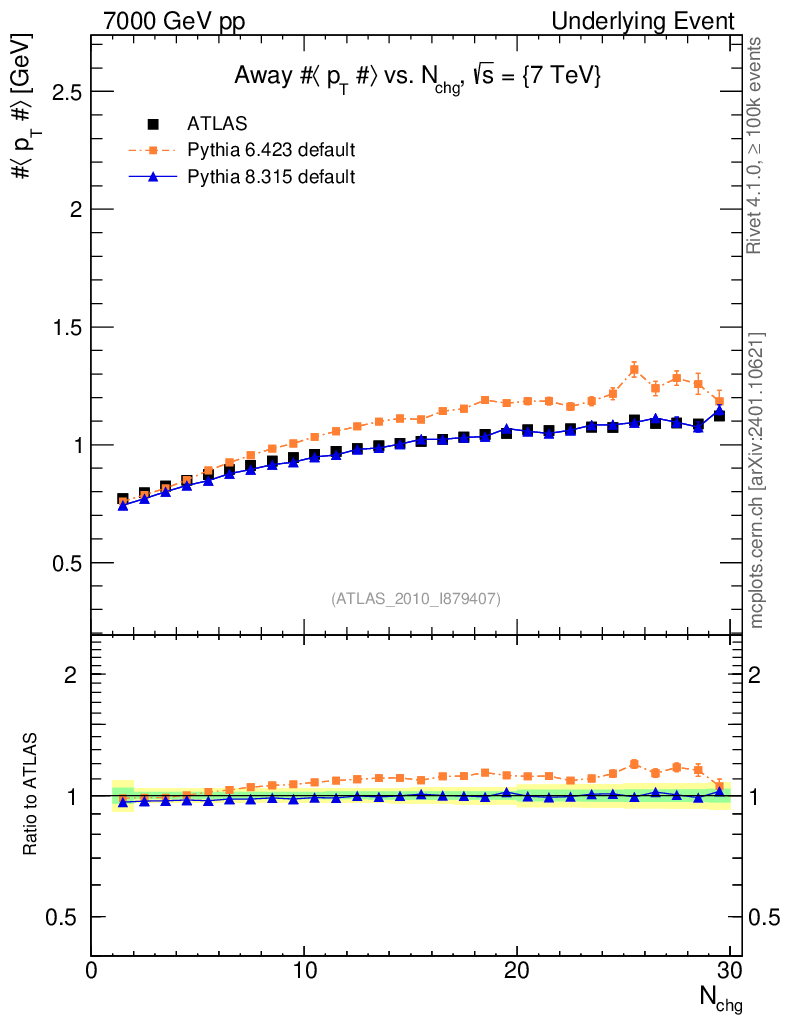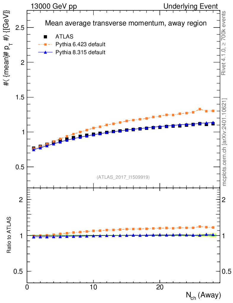 Underlying Event : Away : <pT> vs Nch