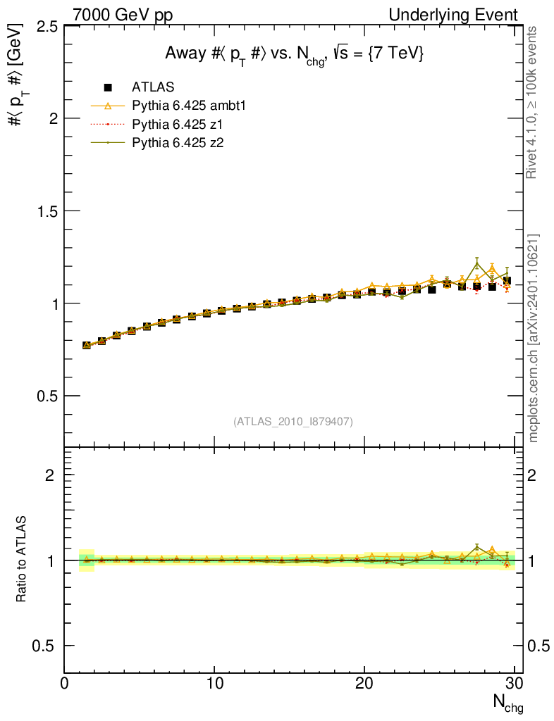 Underlying Event : Away : <pT> vs Nch