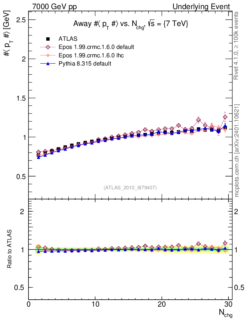 Underlying Event : Away : <pT> vs Nch