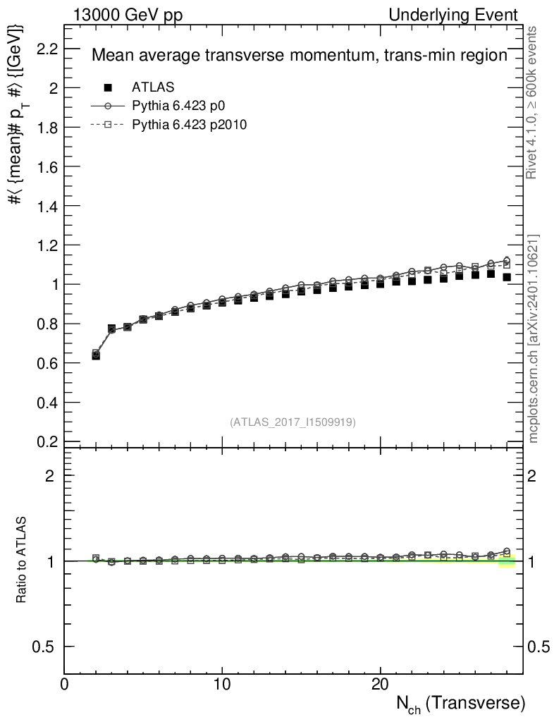 Underlying Event : TransMIN : <pT> vs Nch