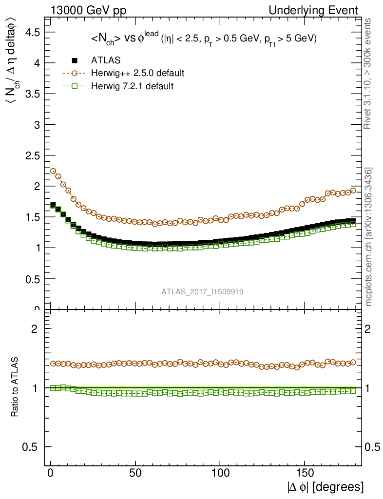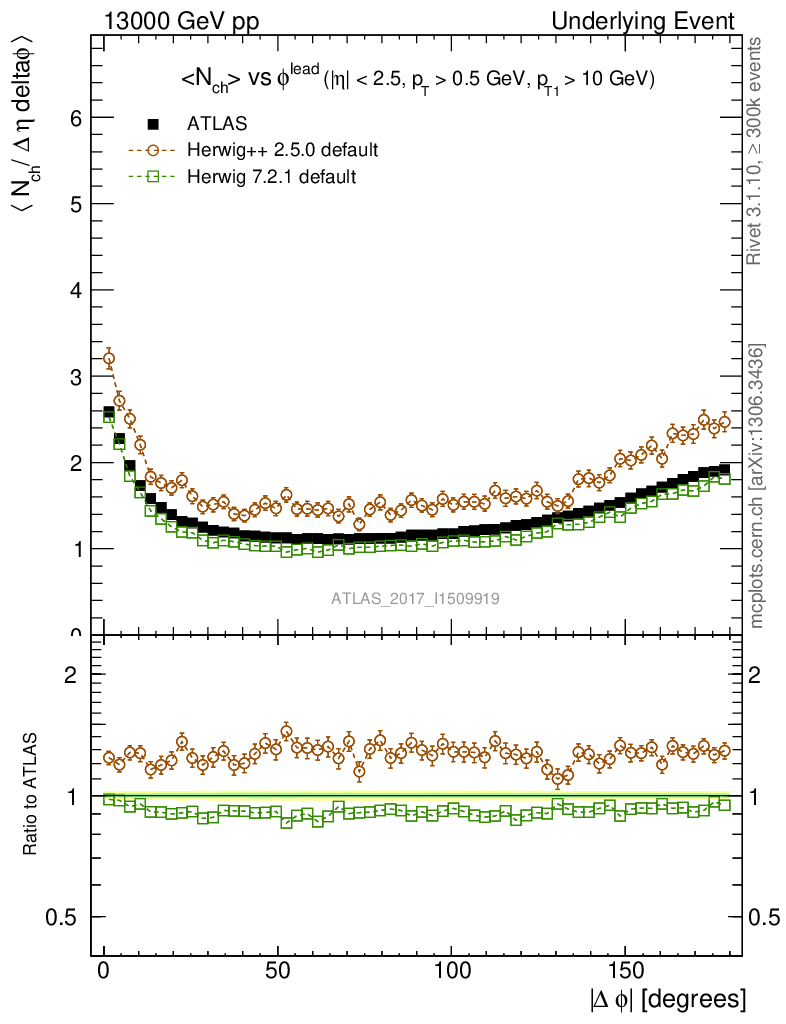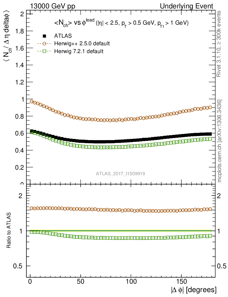 Underlying Event : Δφ distributions : <Nch> vs Δφ
