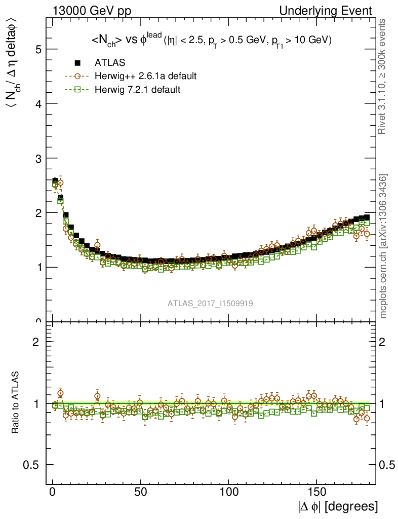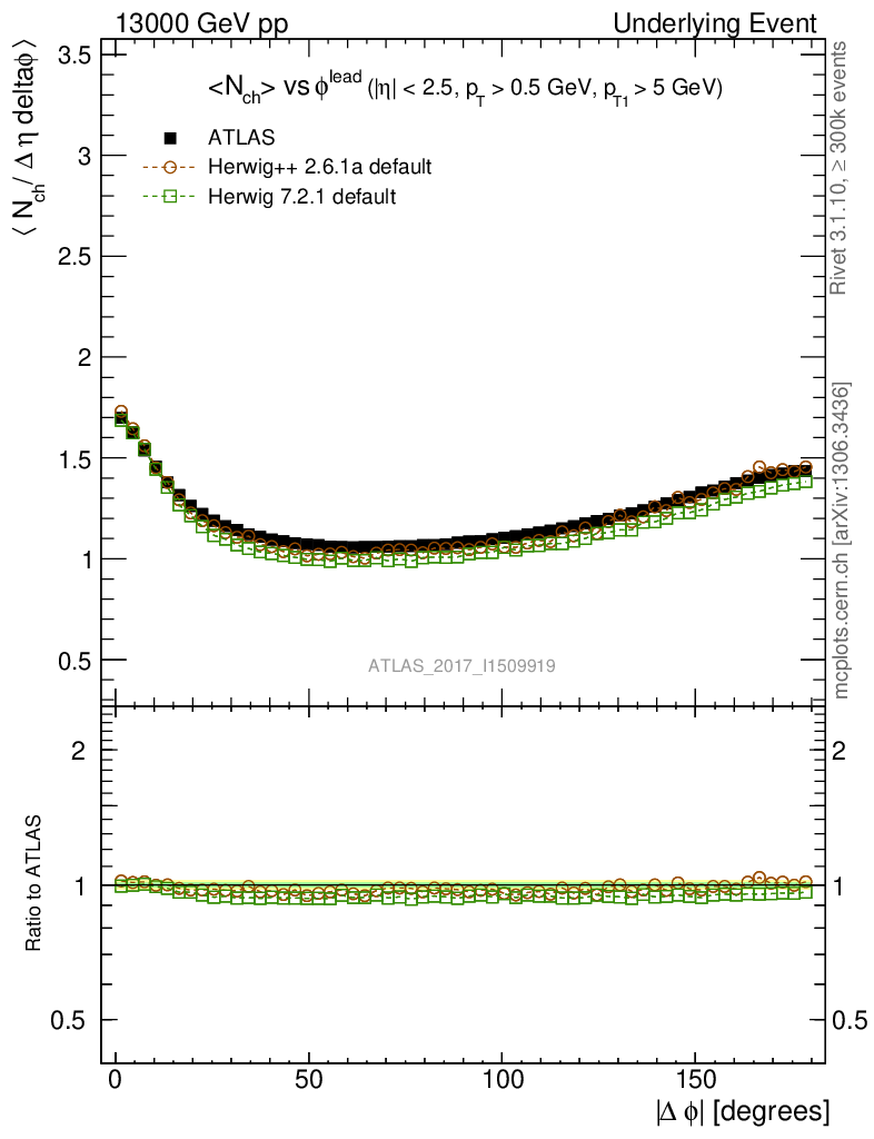 Underlying Event : Δφ distributions : <Nch> vs Δφ