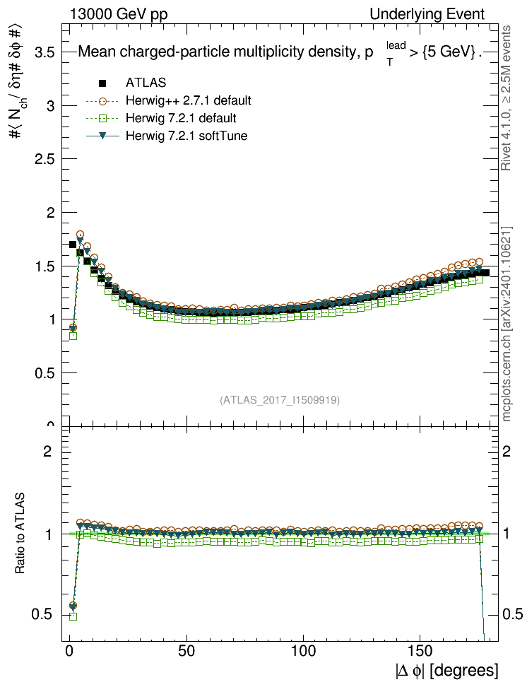 Underlying Event : Δφ distributions : <Nch> vs Δφ