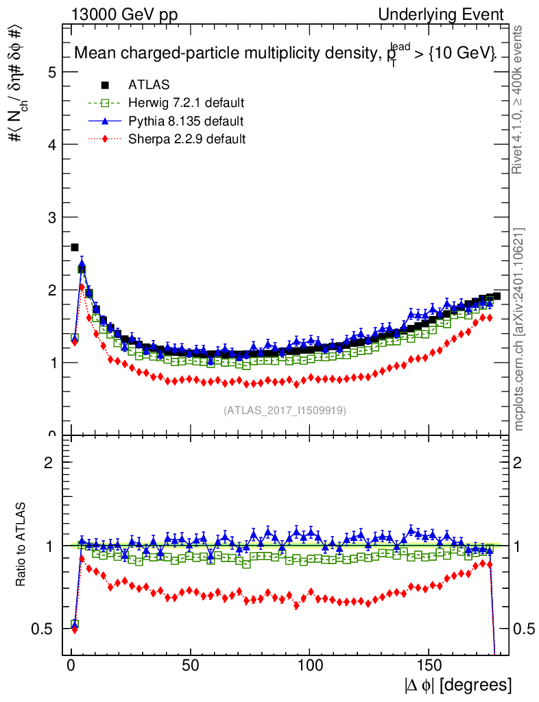 Underlying Event : Δφ distributions : <Nch> vs Δφ