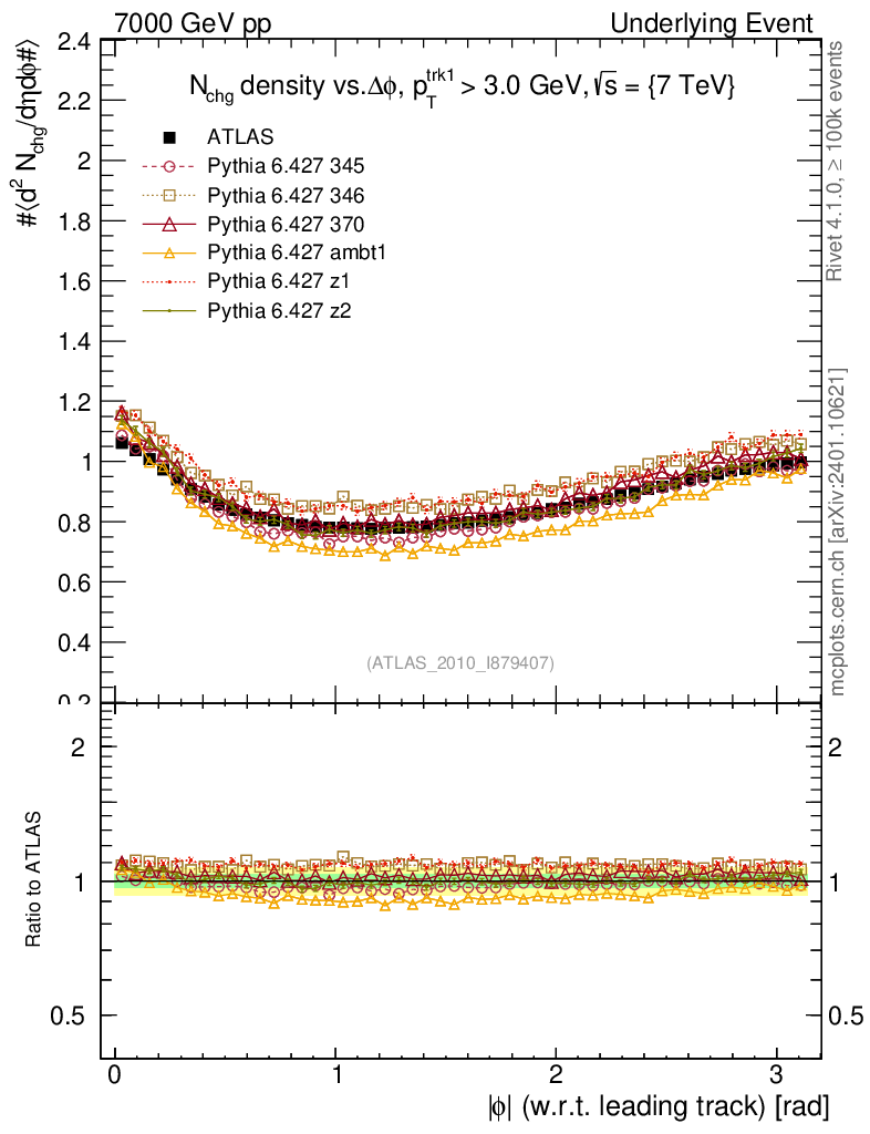 Underlying Event : Δφ distributions : <Nch> vs Δφ