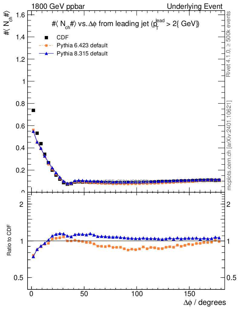 Underlying Event : Δφ distributions : <Nch> vs Δφ