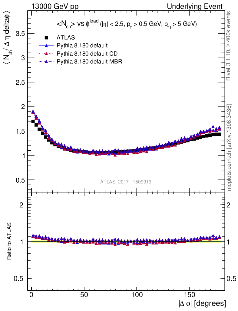 Underlying Event : Δφ distributions : <Nch> vs Δφ