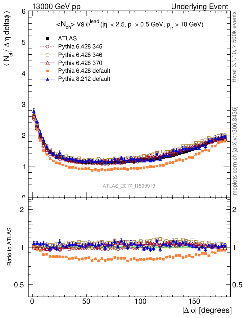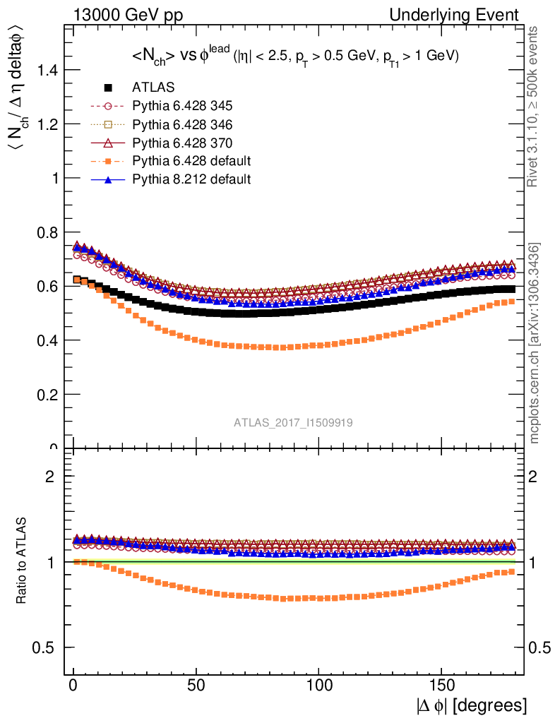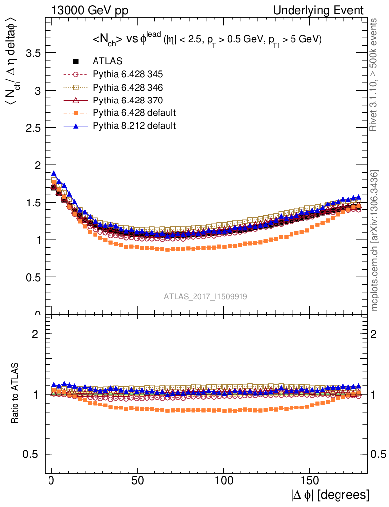 Underlying Event : Δφ distributions : <Nch> vs Δφ