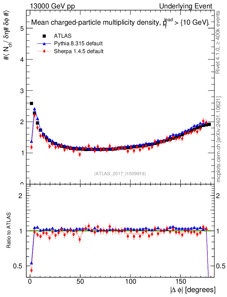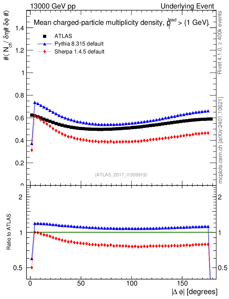 Underlying Event : Δφ distributions : <Nch> vs Δφ
