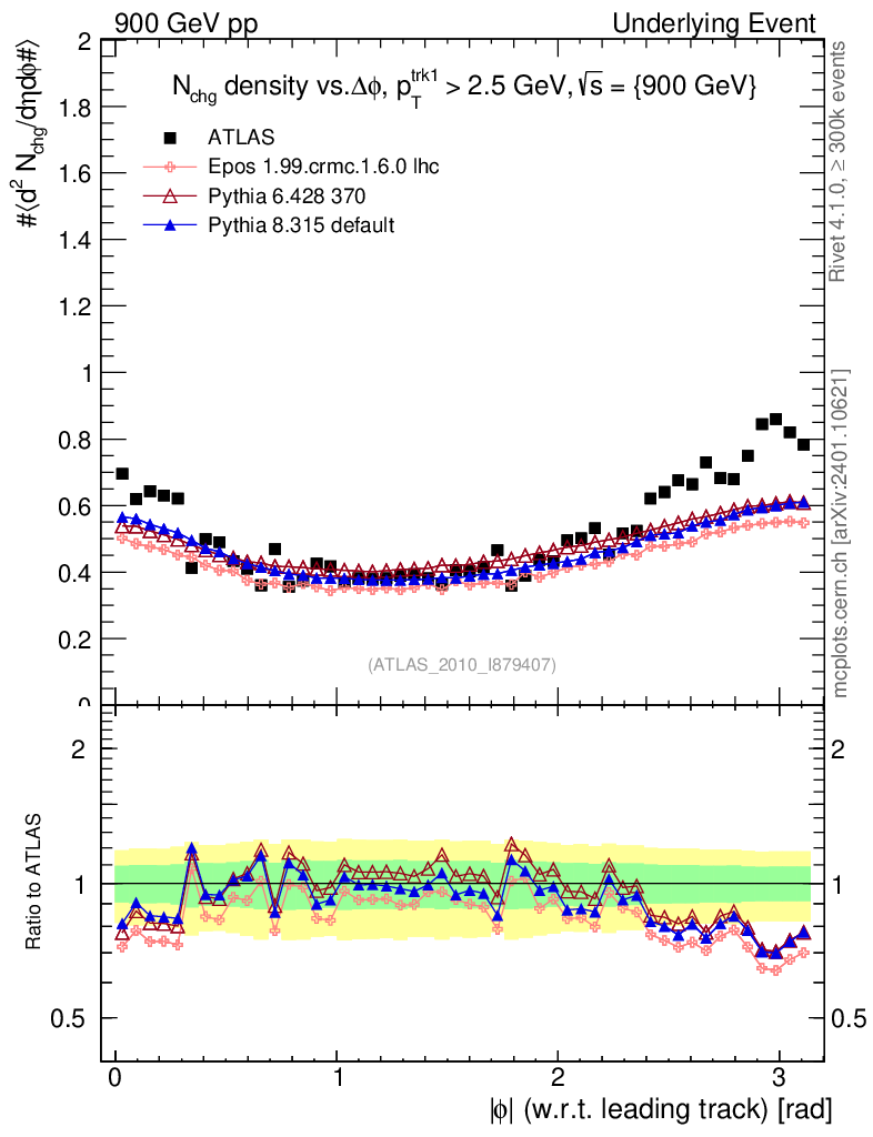 Underlying Event : Δφ distributions : <Nch> vs Δφ