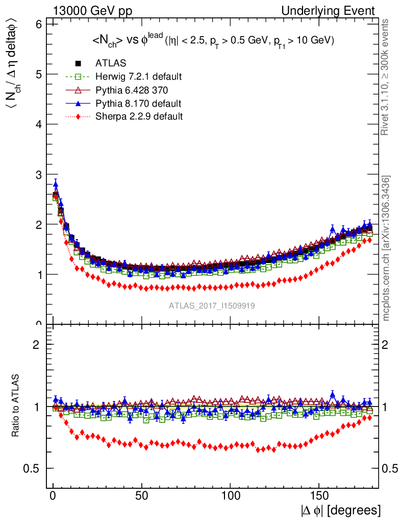 Underlying Event : Δφ distributions : <Nch> vs Δφ