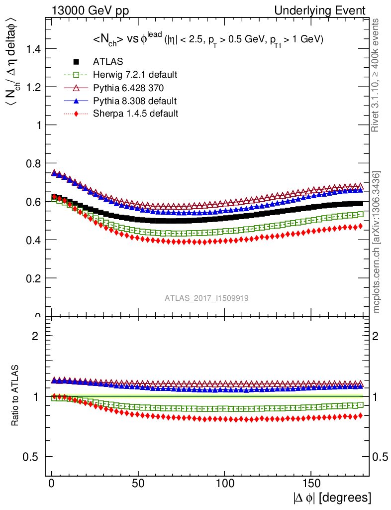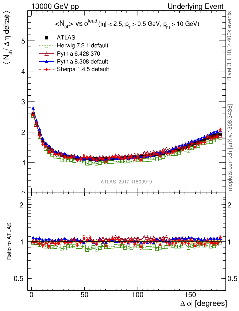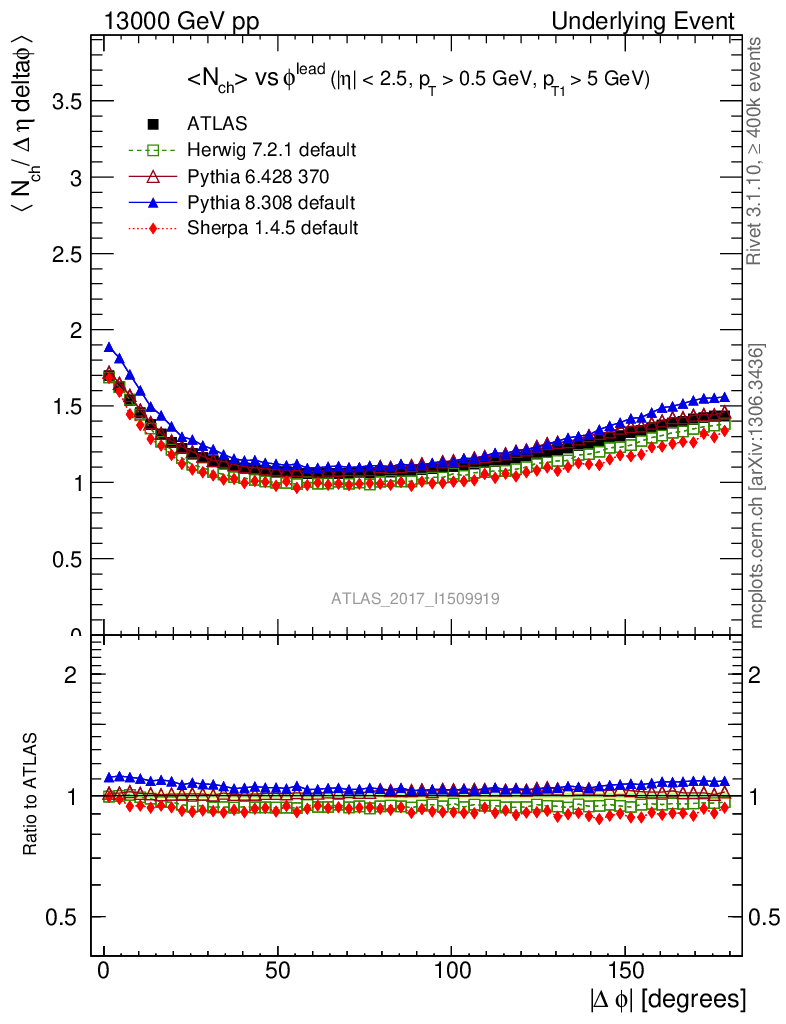 Underlying Event : Δφ distributions : <Nch> vs Δφ