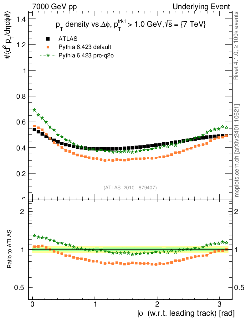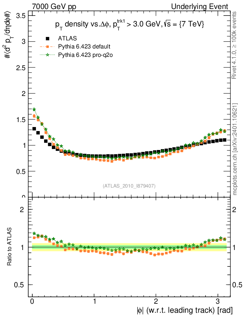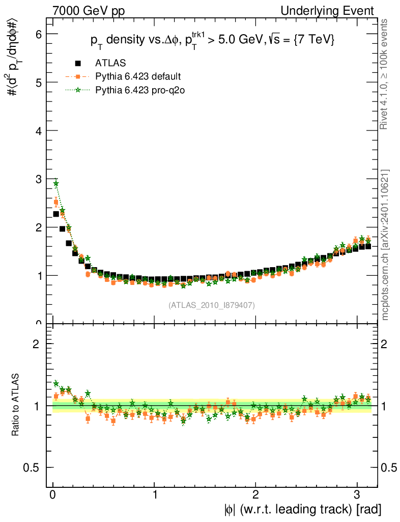 Underlying Event : Δφ distributions : <pT> vs Δφ